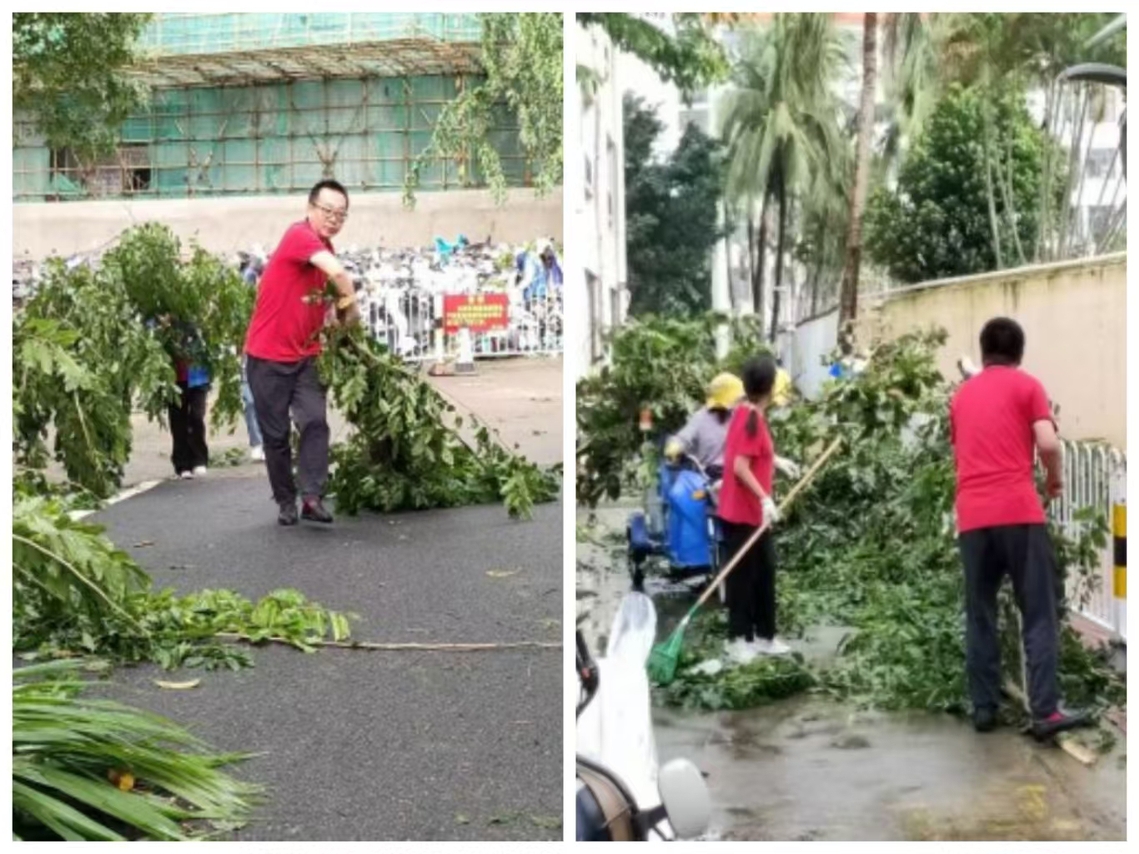 风雨无情,校园有爱。校长梁胜娟在学校工作群寄语:台风过境,校园狼藉一片;恰逢中秋,本是阖家团圆之时。是你们,亲爱的老师,附小教职工们,提前结束假期、重返校园,化身“清障者”与“守护者”。是你们弯腰清扫断枝落叶的身影,是你们合力扶树的身影,让凌乱的校园在最短时间内恢复了整洁与秩序,也为我们驱散了台风后的阴霾。这份“舍小家为大家”的担当,比中秋的月光更温暖,比平时一句“我爱你”更动人。