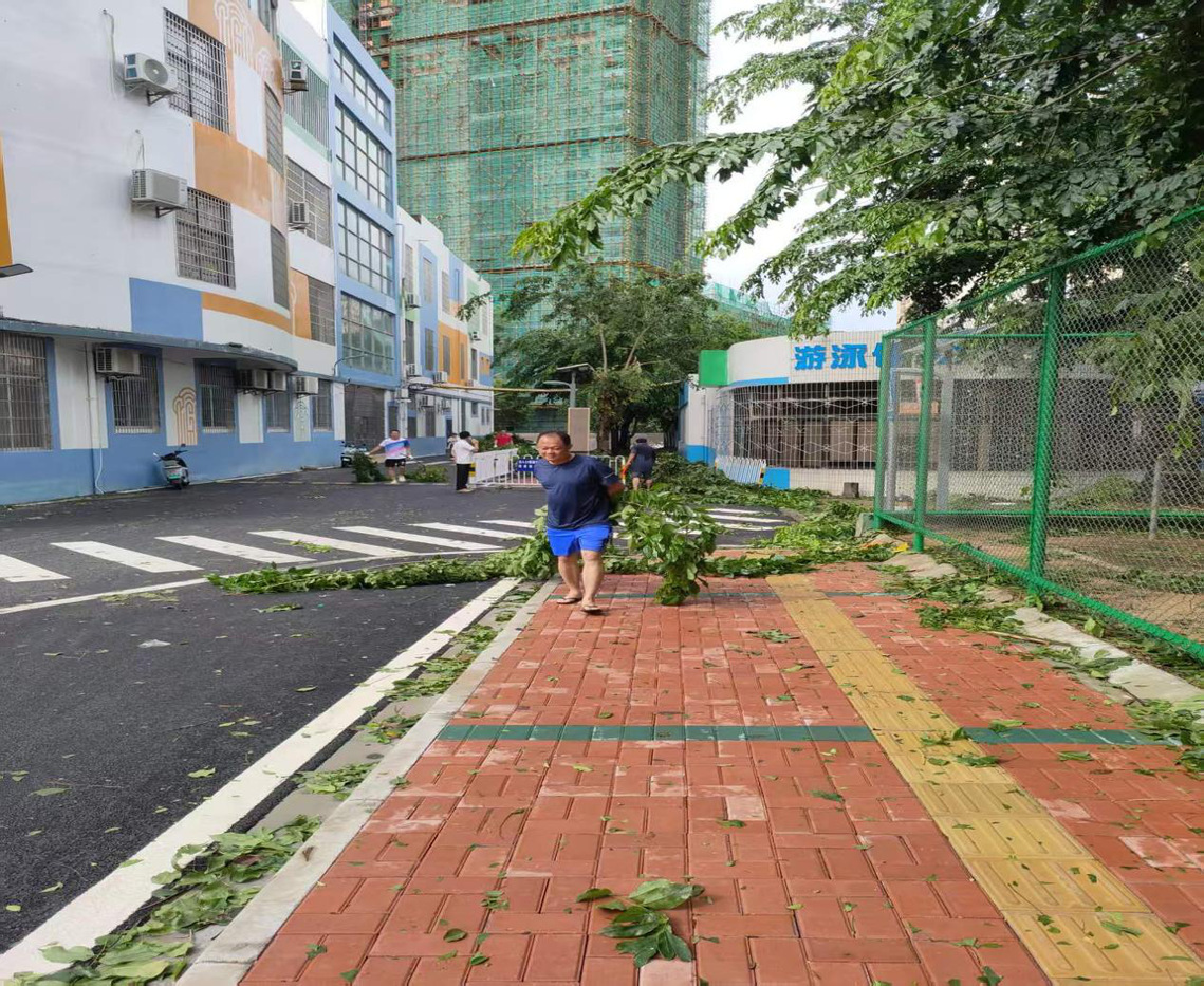 第21号台风“麦德姆”携狂风暴雨袭击琼岛,给海口市的生产生活带来严峻考验。2025年10月6日,风雨过后,欧乐影院 校园内一片忙碌而有序的景象。海南师范大学聂清斌校长实地查看附小受灾情况,并对附小的校园文化建设提出指导建议。后勤处蒙激流处长陪同指导附小灾后清运工作。
